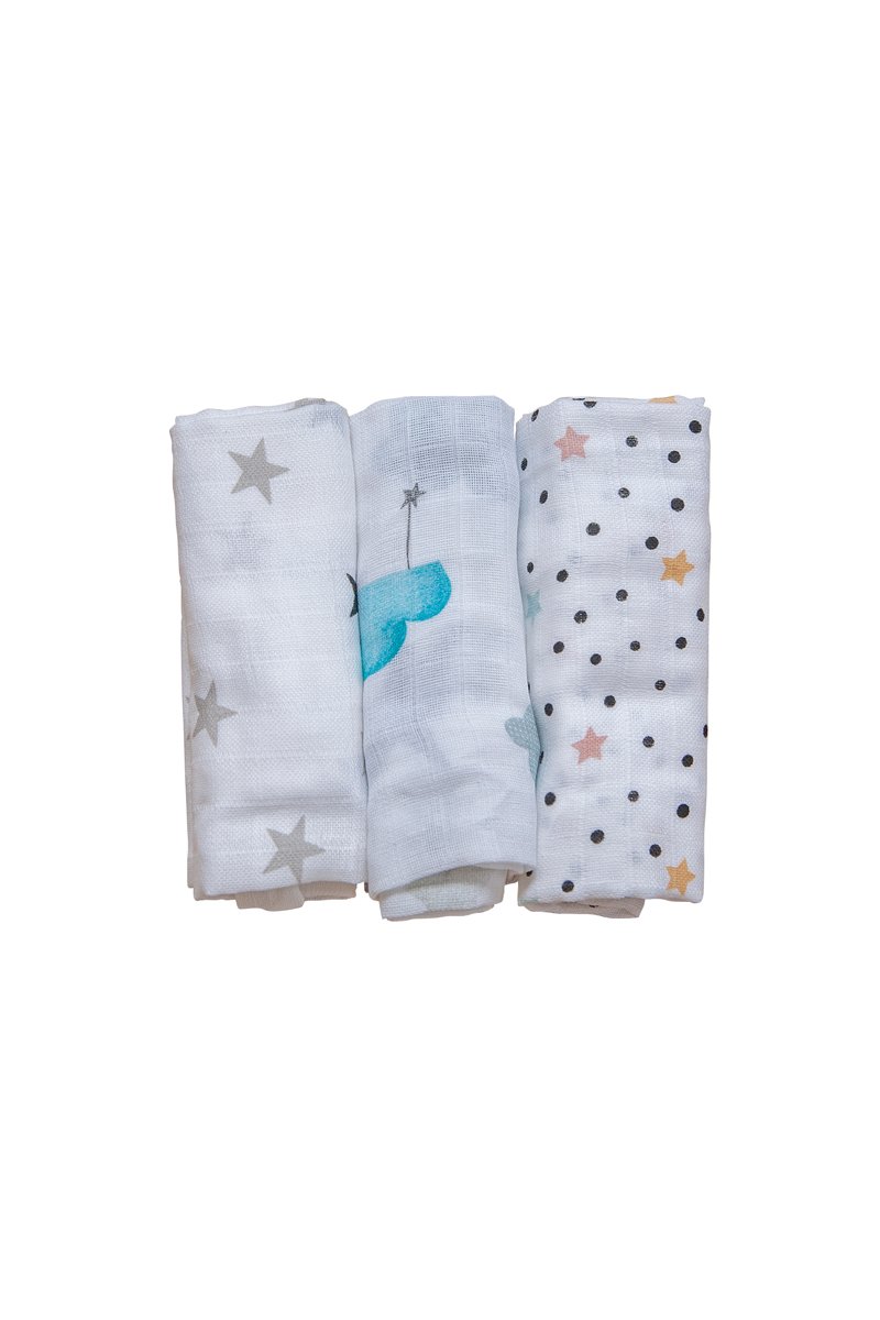 3 muselinas Nordic Bear, Chloé b & Fishing - 60 x 60 cm - Multicolor