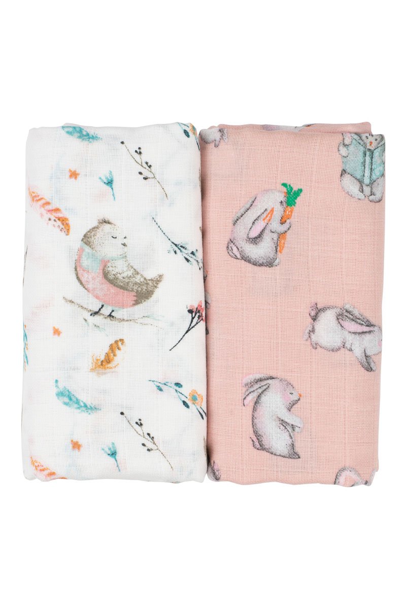 2 muselinas Rabbit Explorer - 120 x 120 cm - Blanco y rosa