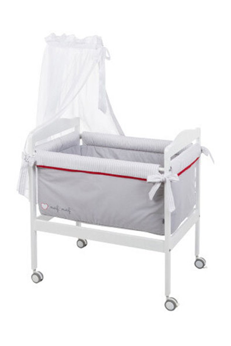 Minicuna y textil de cuna Rabbit - 6 piezas - Desde recién nacido - Blanco y gris