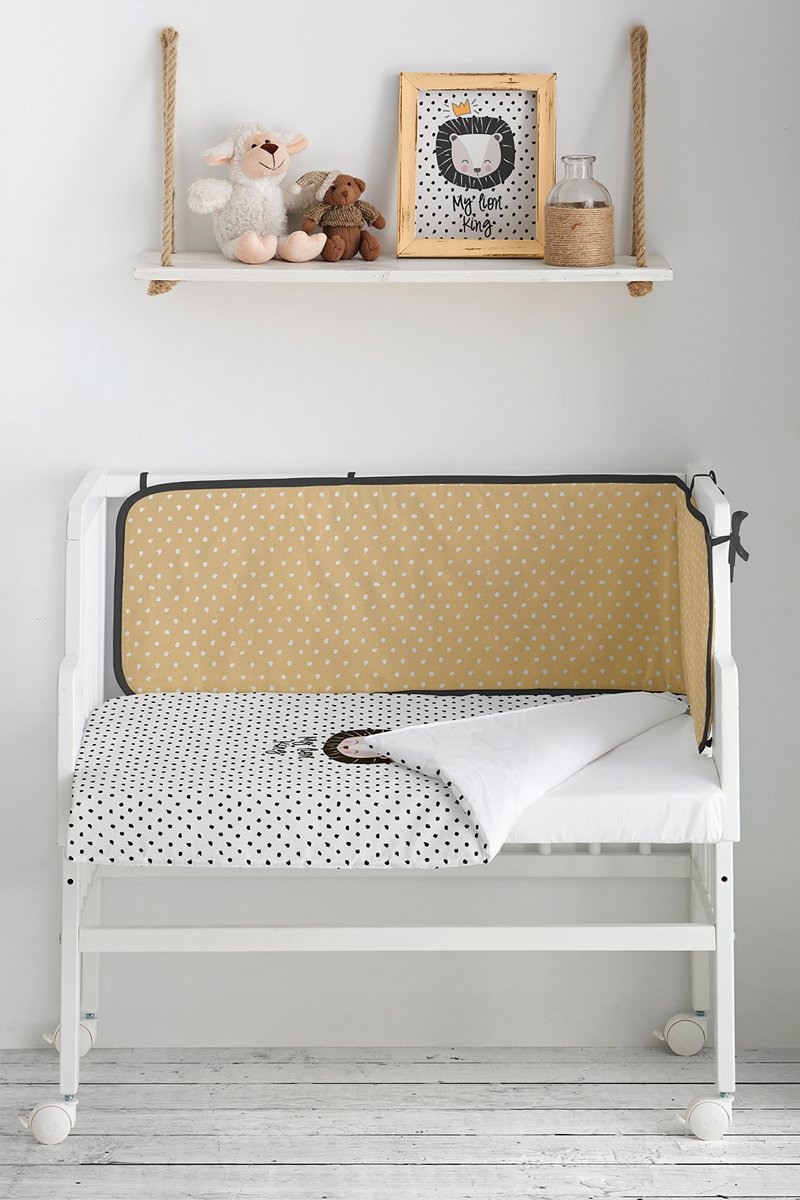 Minicuna de colecho y juego de cuna My Lion King - Desde recién nacido - 4 piezas - Blanco y amarillo