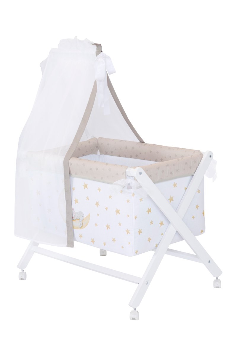 Minicuna, juego de cuna y dosel Marlon Night - Desde recién nacido - 6 piezas - Blanco y marrón