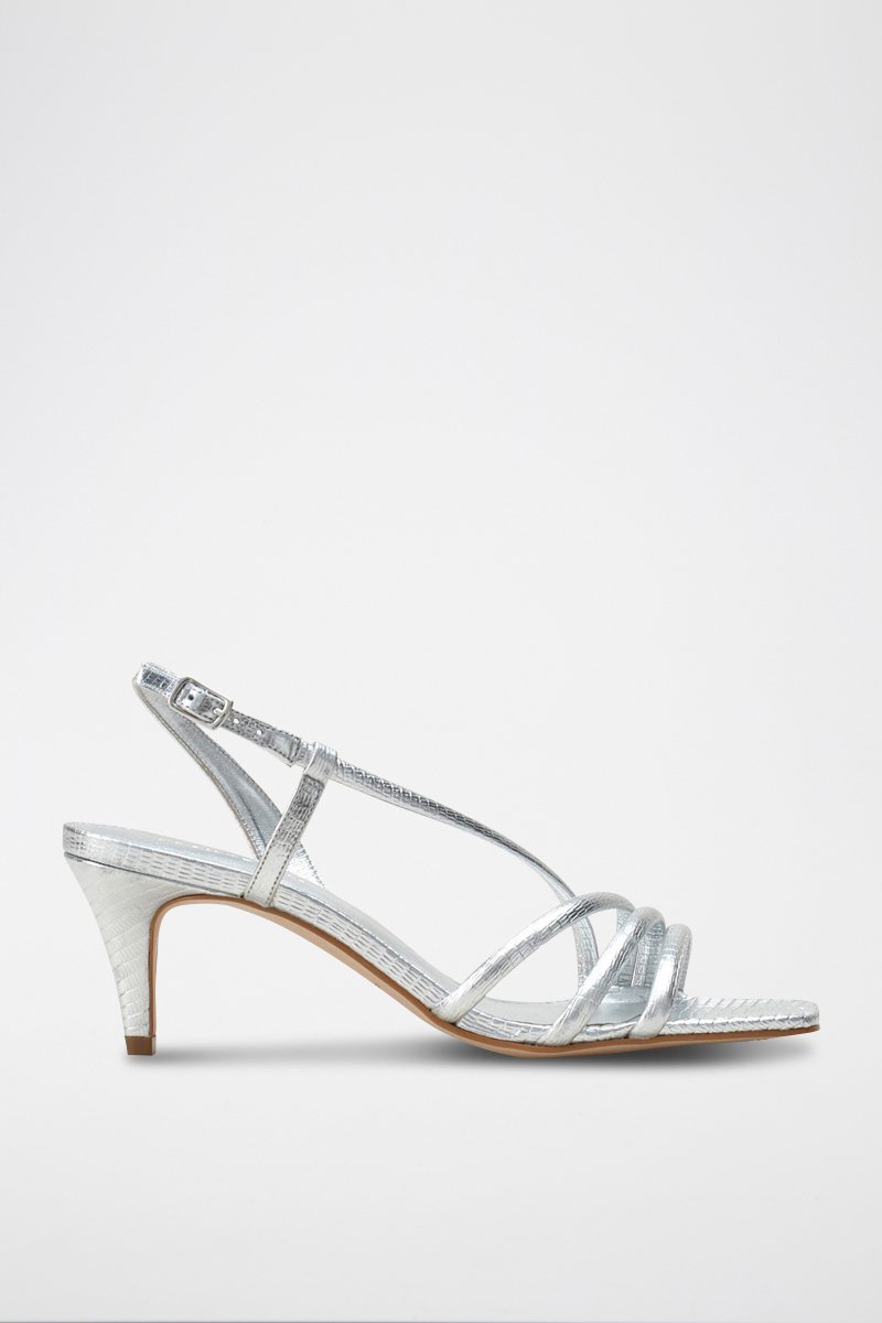 Sandalias de piel metalizada de tacón.