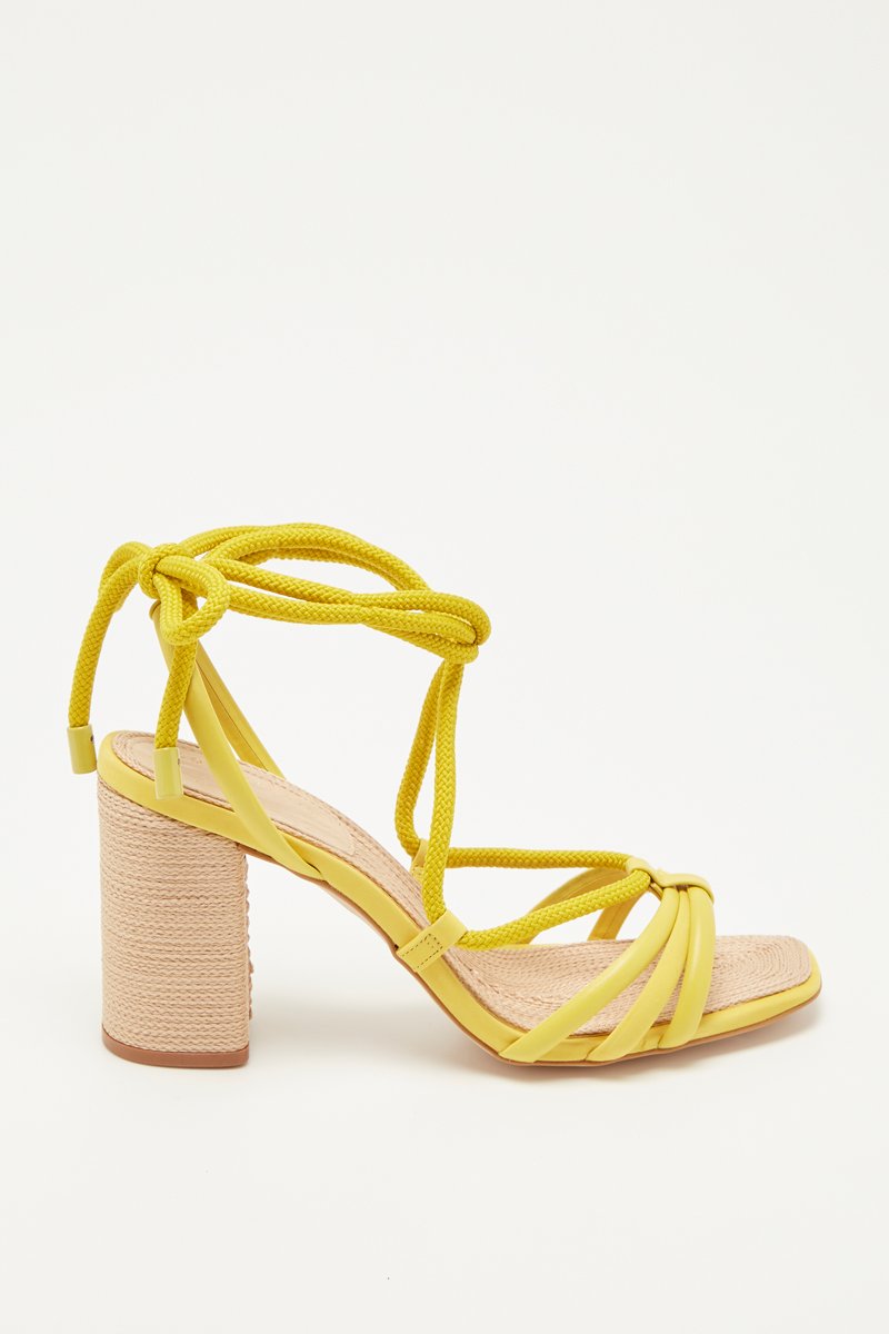 Sandalias de piel bovina de terciopelo de tacón Barbara - Amarillo
