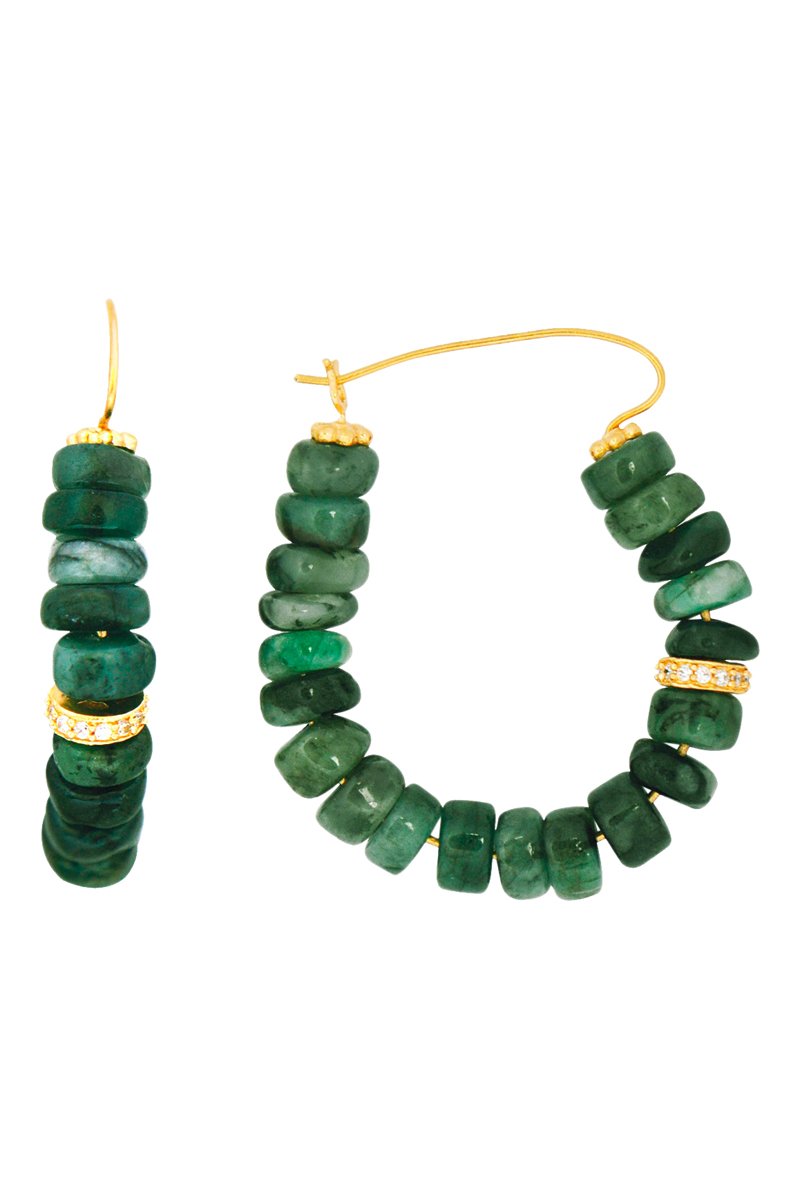 Criollas bañadas en oro fino amarillo con esmeraldas y circonitas.