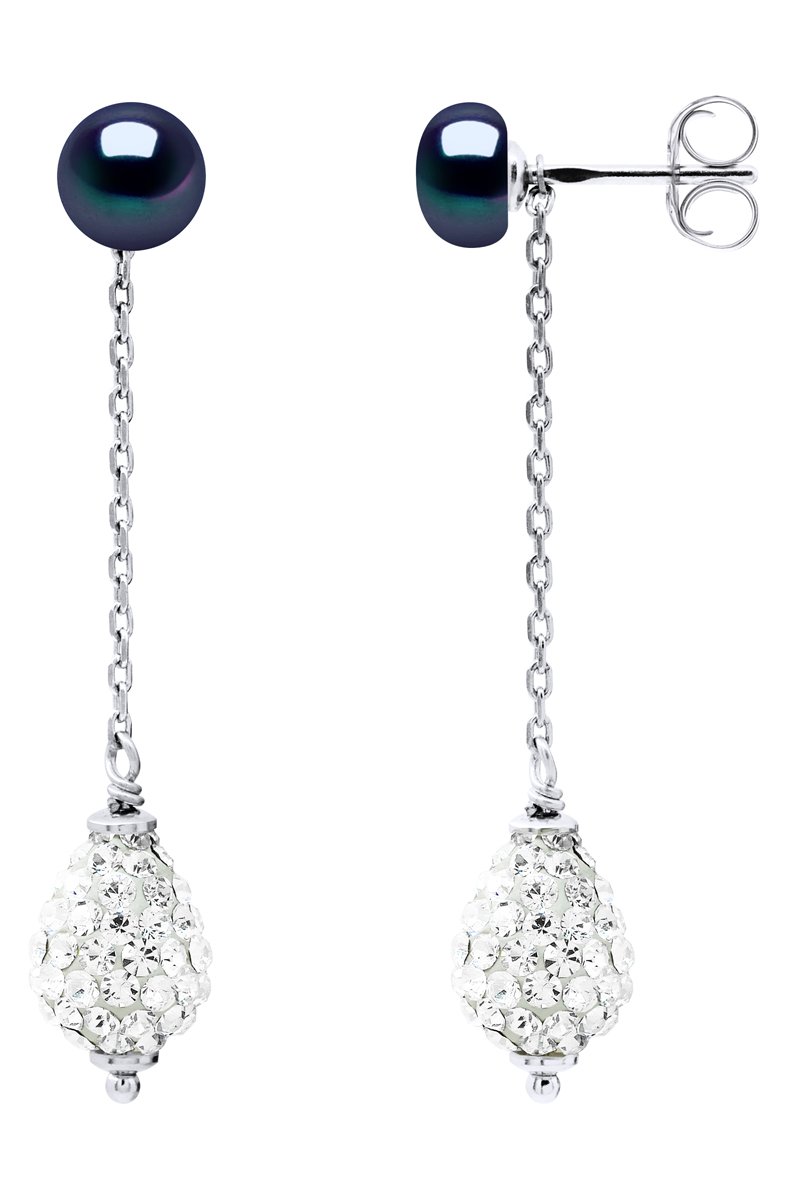Pendientes de plata con una perla cultivada de agua dulce y cristales.