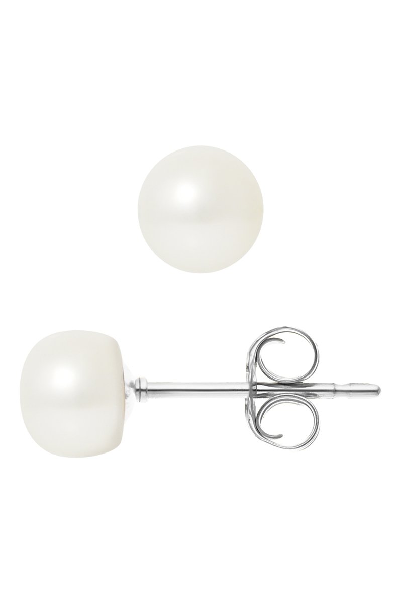 Dormilonas de oro blanco con una perla cultivada de agua dulce.
