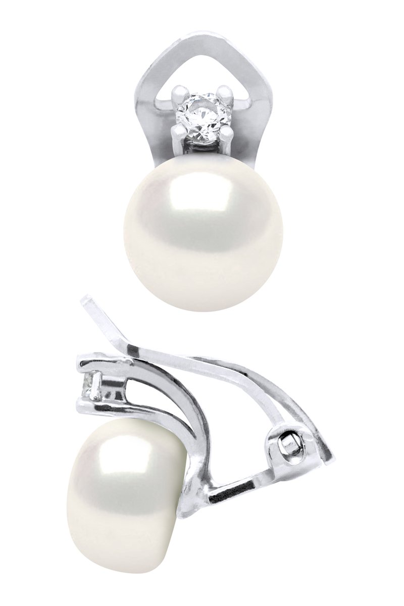 Dormilonas de plata con una perla cultivada de agua dulce y una circonita.