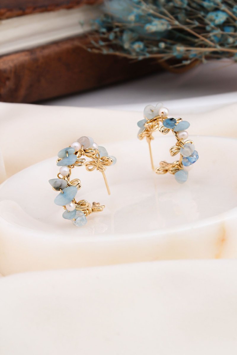 Criollas chapadas en oro amarillo con ópalos y perlas cultivadas.
