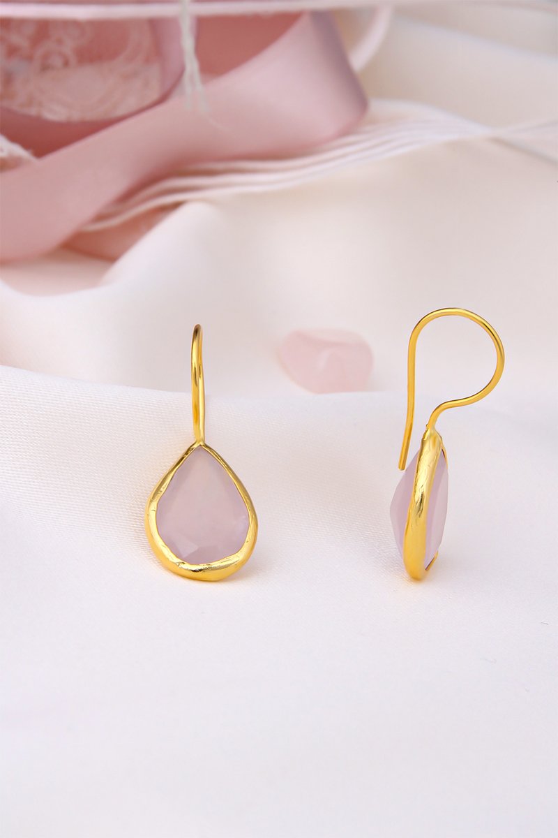 Pendientes bañados en oro fino amarillo con cuarzo rosa.