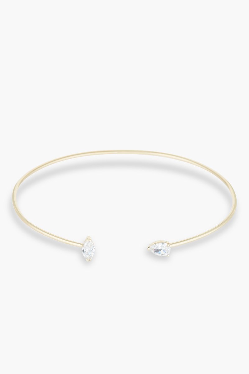 Pulsera abierta de oro amarillo con circonitas.