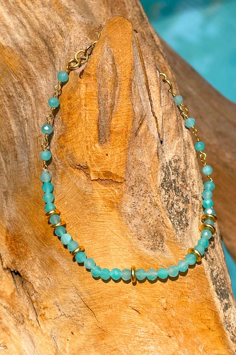 Pulsera bañada en oro fino amarillo - Amazonita