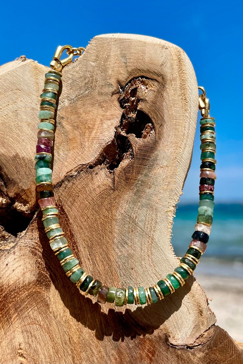 Pulsera bañada en oro fino amarillo - Esmeraldas y turmalinas