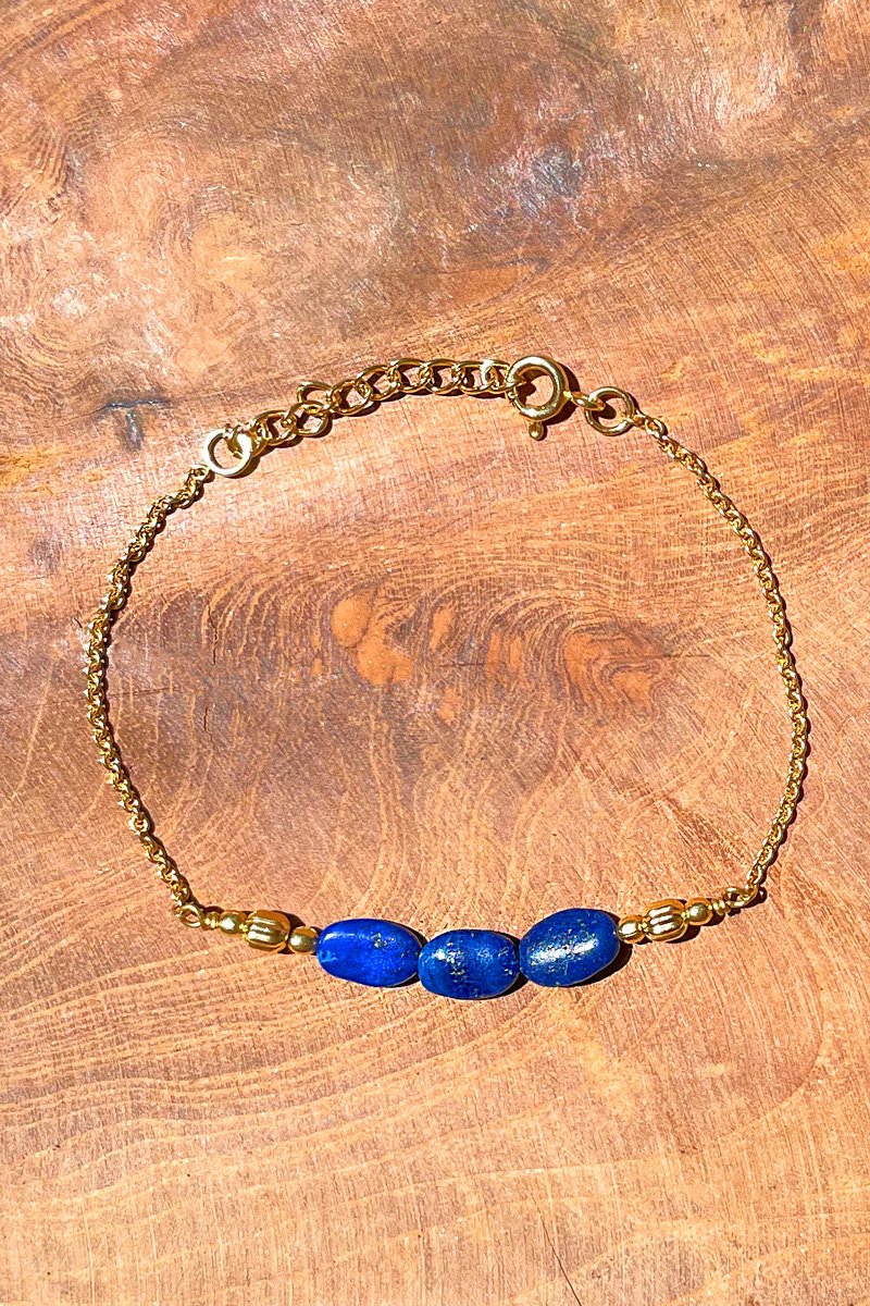 Pulsera bañada en oro fino amarillo con lapislázuli.