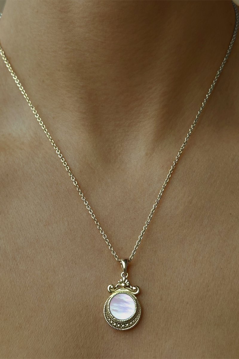 Material: latón bañado en oro fino amarillo de 18 quilates y concha