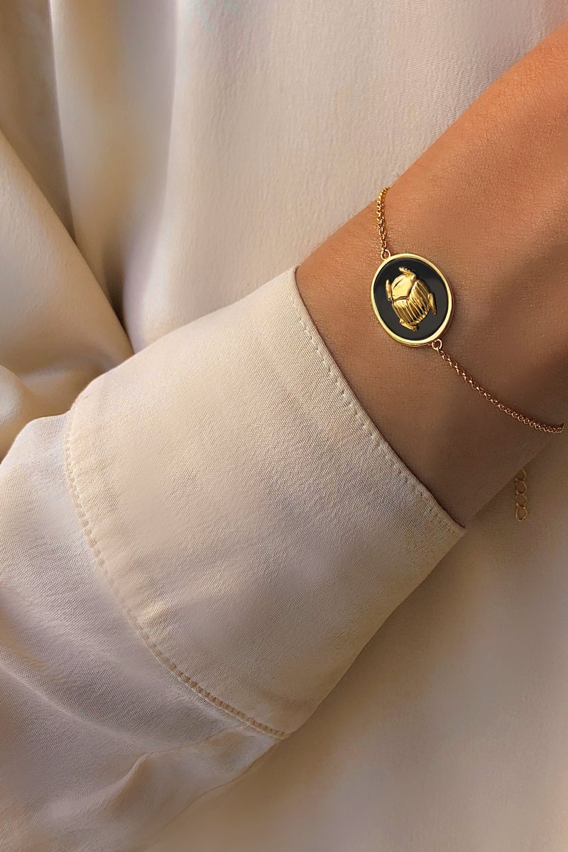 Material: latón bañado en oro fino amarillo de 18 quilates y ónice