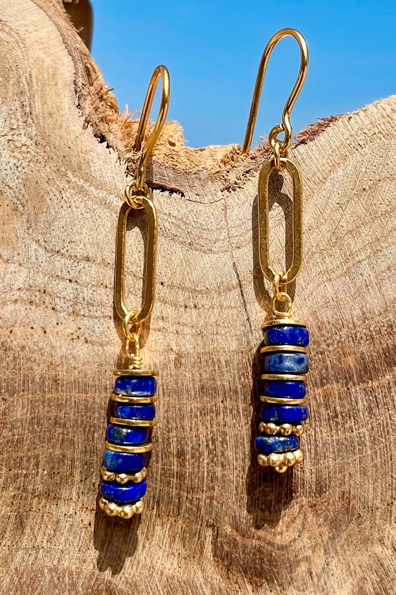 Material: latón bañado en oro fino amarillo de 18 quilates y lapislázuli