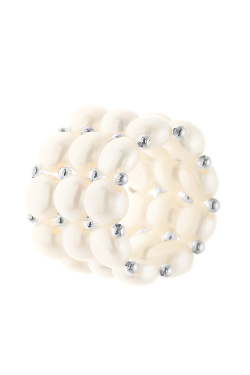 Anillo elástico con perlas cultivadas de agua dulce.