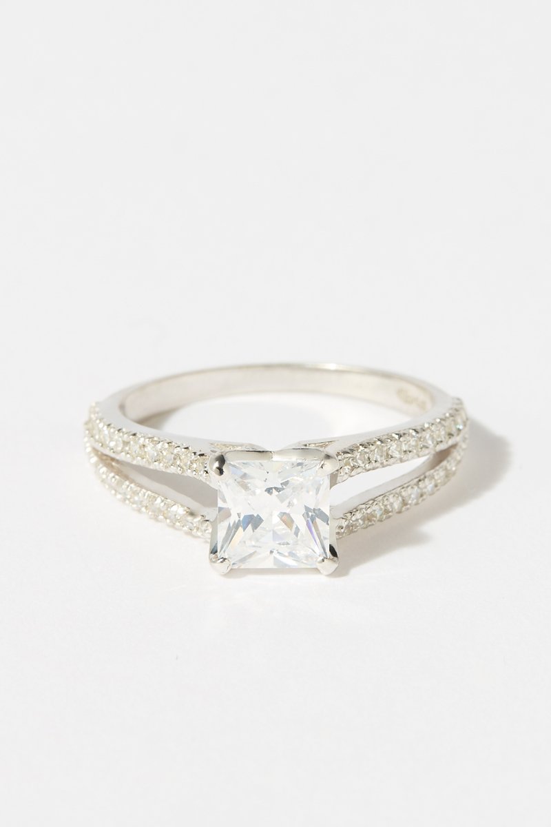 Anillo de oro blanco con circonitas.