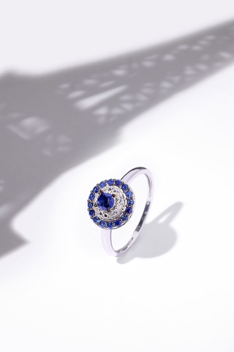 Anillo Talia - Oro blanco, diamantes y zafiros