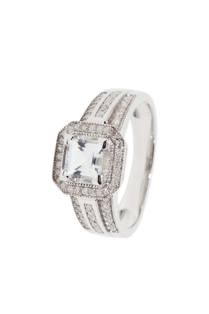 Anillo Remban - Oro blanco, diamantes y topacio