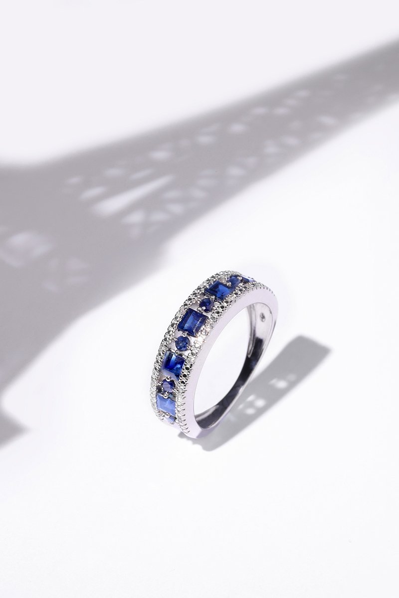 Anillo Surat - Oro blanco, diamantes y zafiros