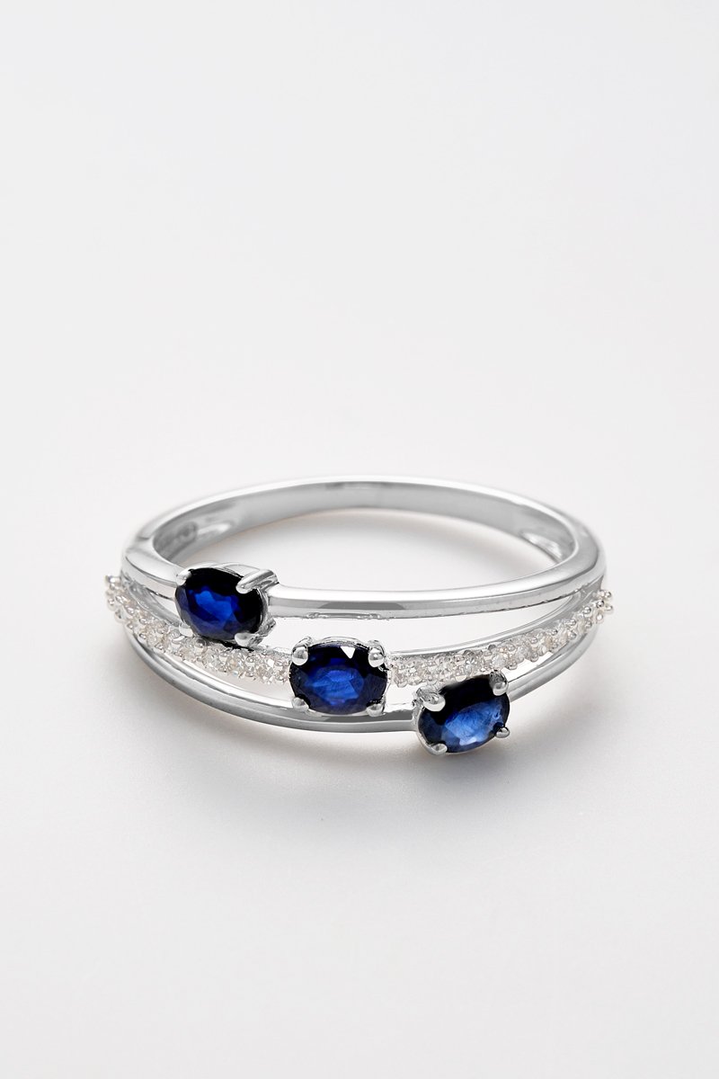 Anillo Trio de Saphir - Oro blanco, diamantes y zafiros