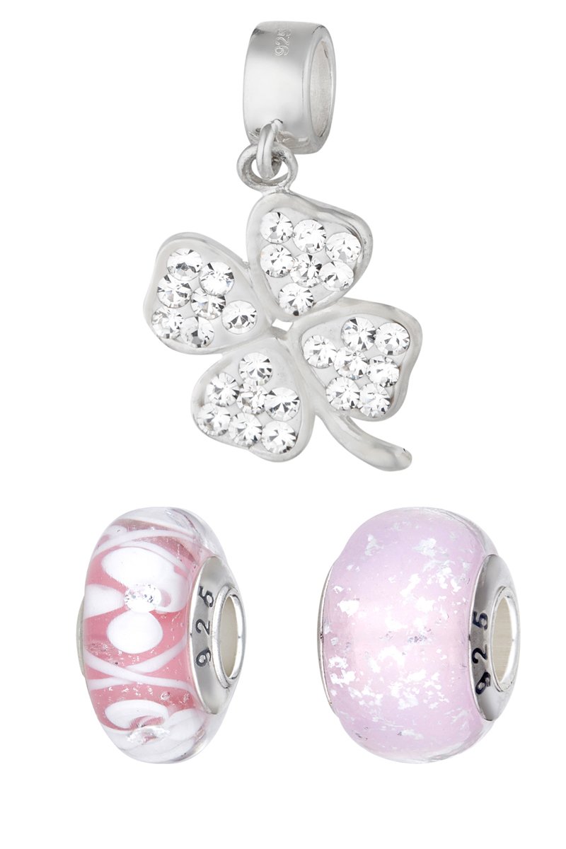 2 beads y 1 charm colgante - Plata y cristal de Murano