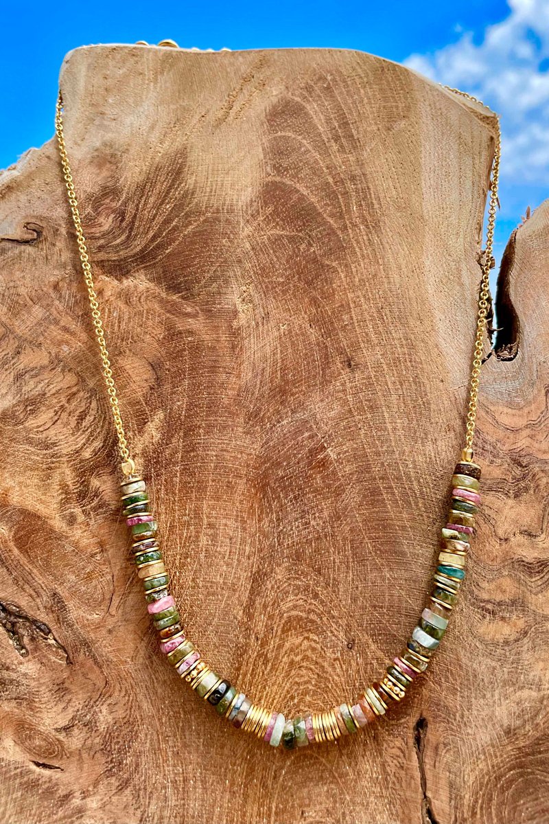 Collar bañado en oro fino amarillo - Turmalinas