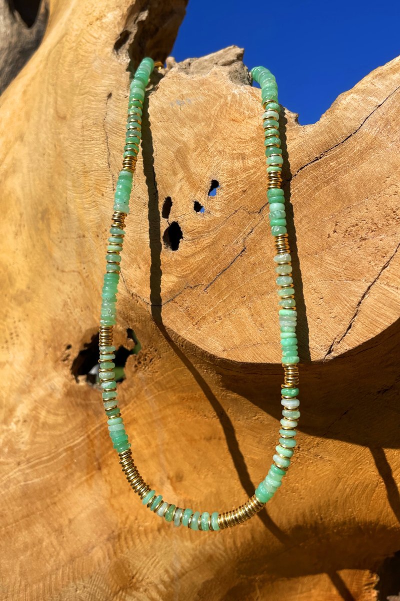 Material: latón bañado en oro fino amarillo de 18 quilates y crisoprasa