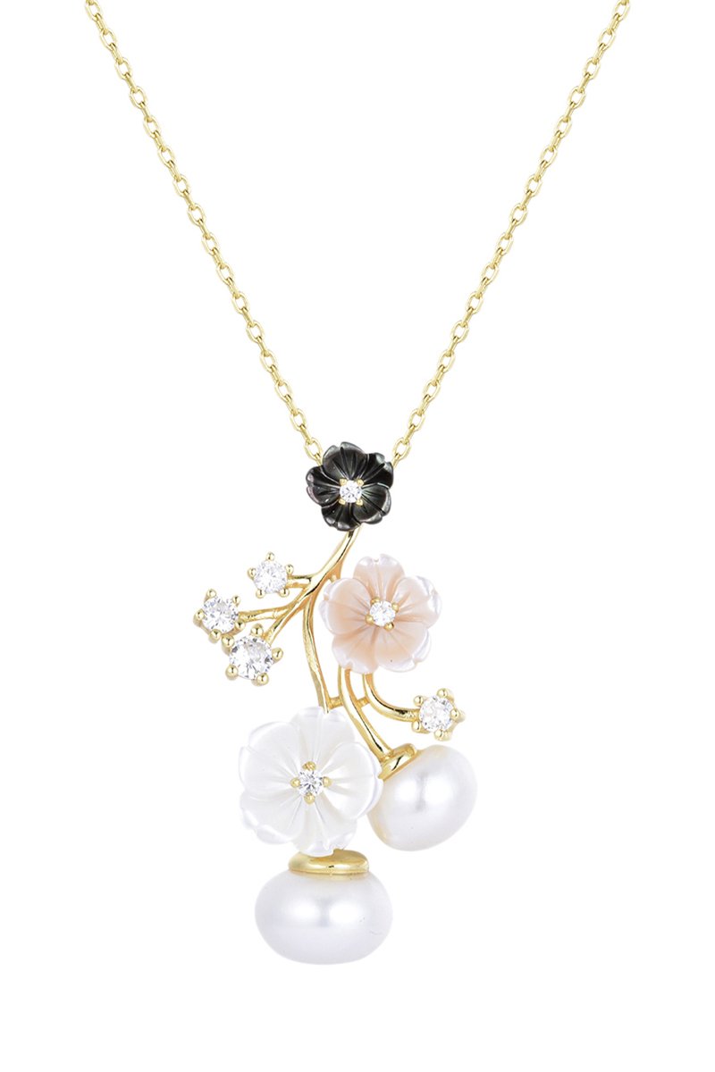 Collar de plata chapada en oro amarillo con nácar, circonitas, perlas de agua dulce y cultivadas.