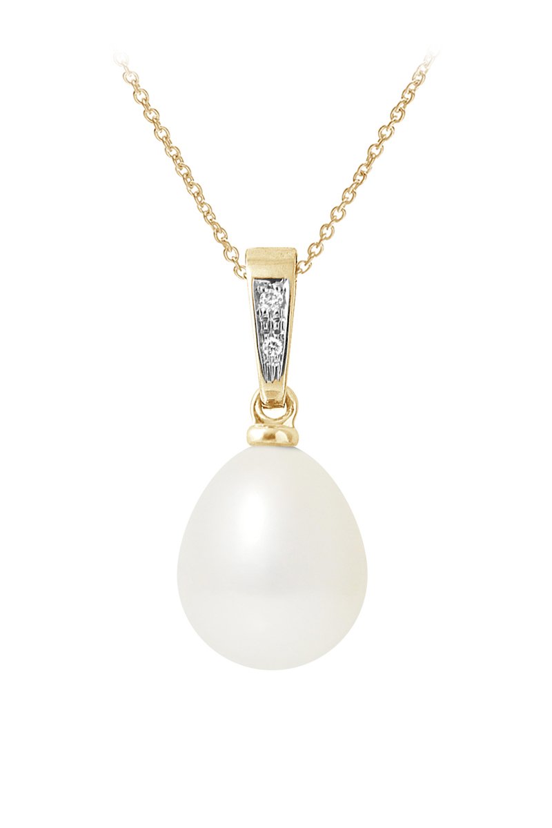 Colgante de oro amarillo con 2 diamantes y una perla cultivada.