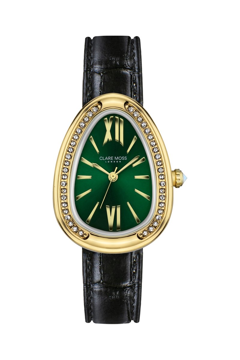 Reloj de cuarzo de piel y circones Vintage - Negro y dorado