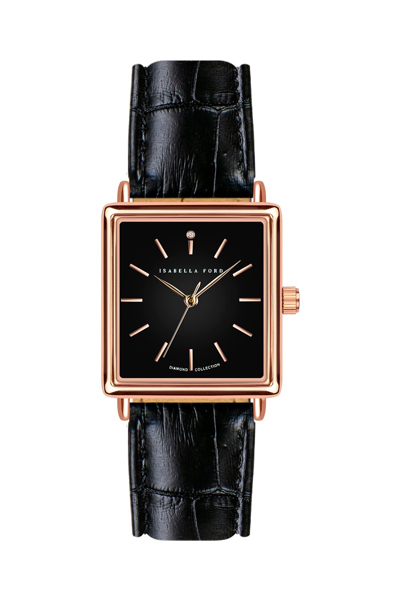 Reloj de cuarzo de piel y diamante Patricia