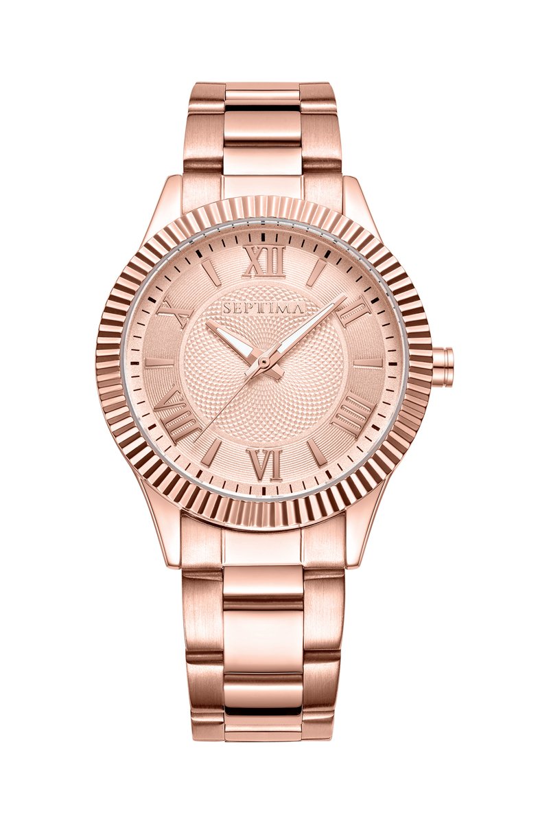 Reloj de cuarzo de acero - Rosa dorado y blanco