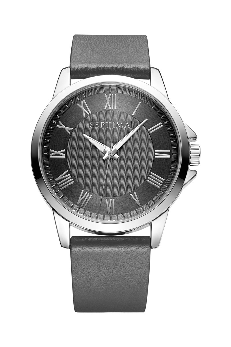 Reloj de cuarzo de piel - Gris oscuro y plateado