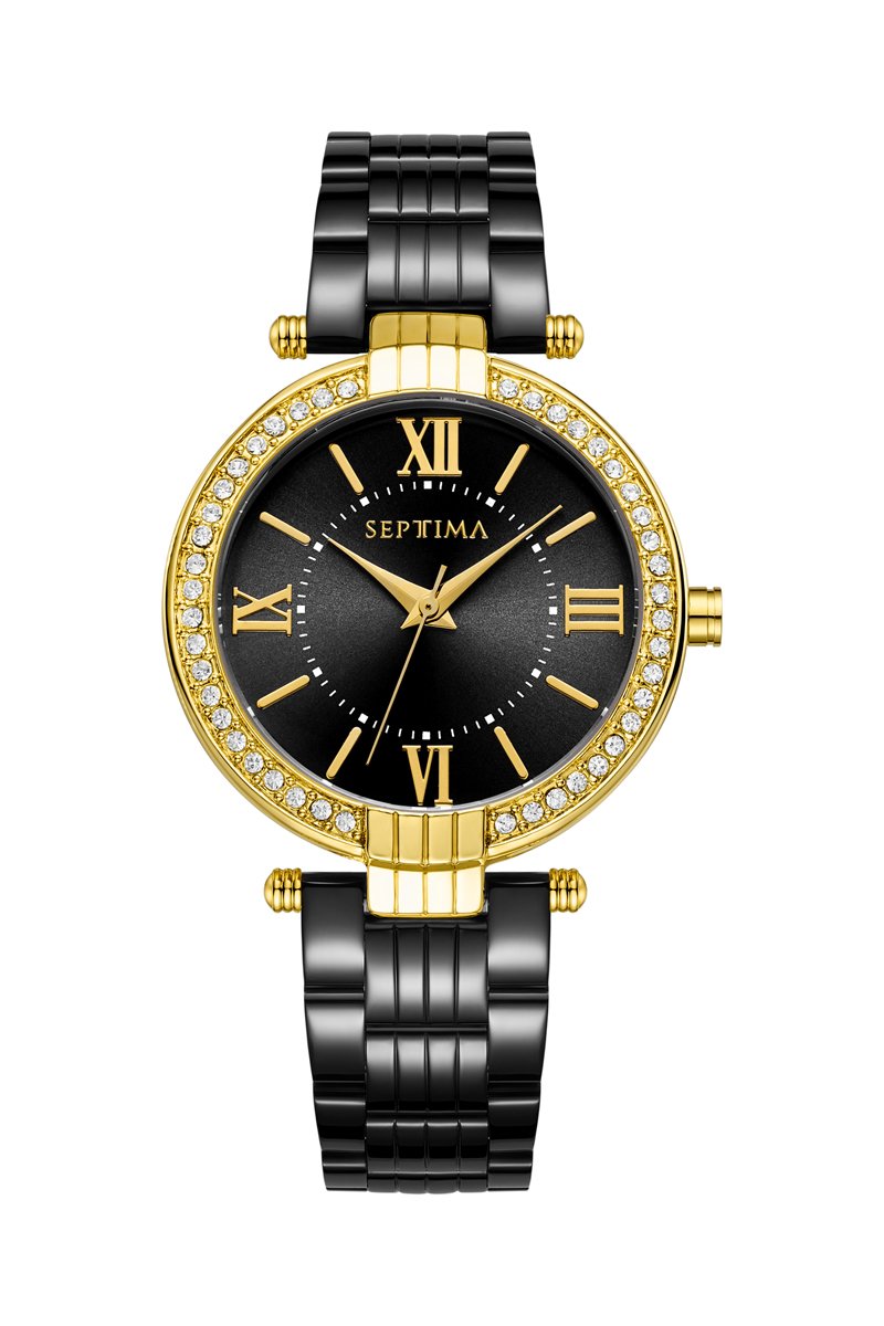 Reloj de cuarzo de acero - Negro y dorado