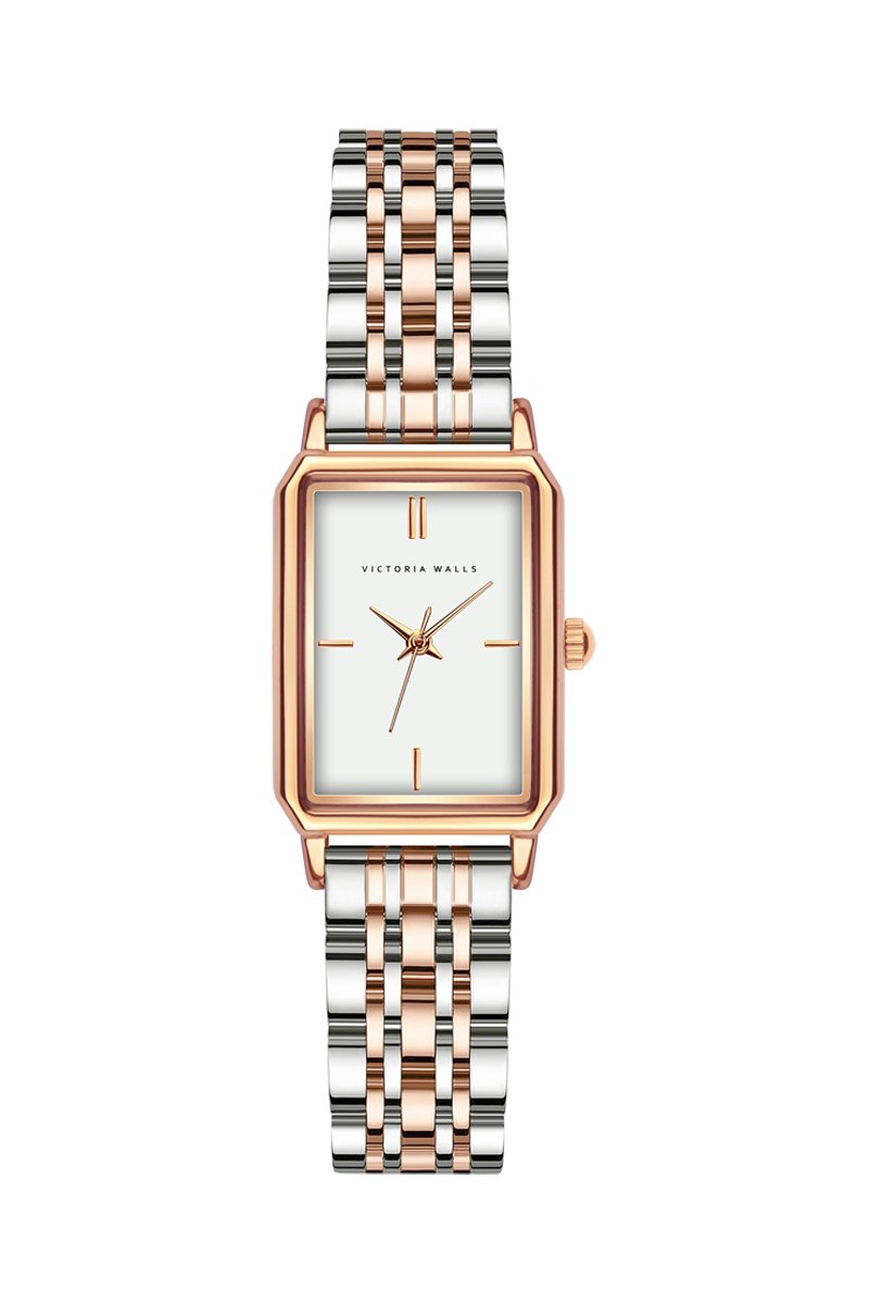 Reloj de cuarzo de acero - Rosa dorado y plateado - Victoria Walls