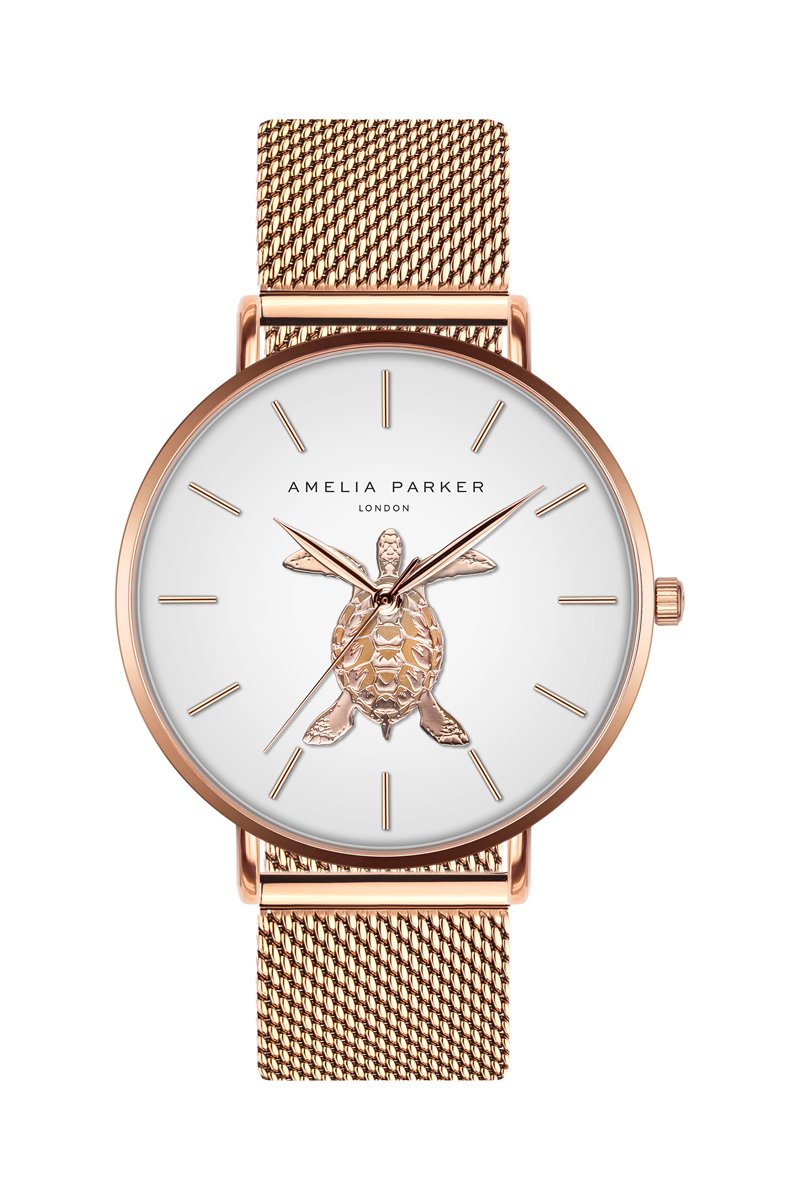 Reloj de cuarzo de acero Rose Turtle - Rosa dorado y blanco