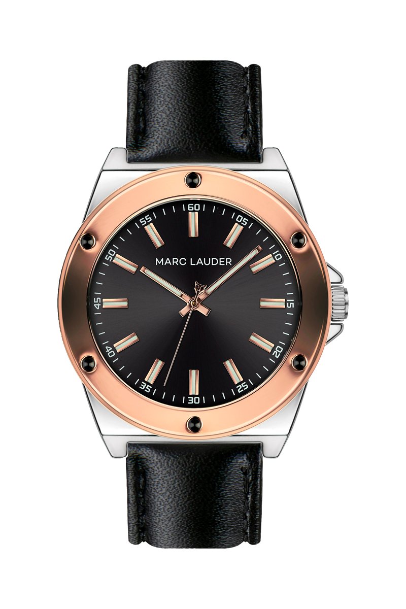 Reloj de cuarzo de piel Mykonos - Negro y rosa dorado