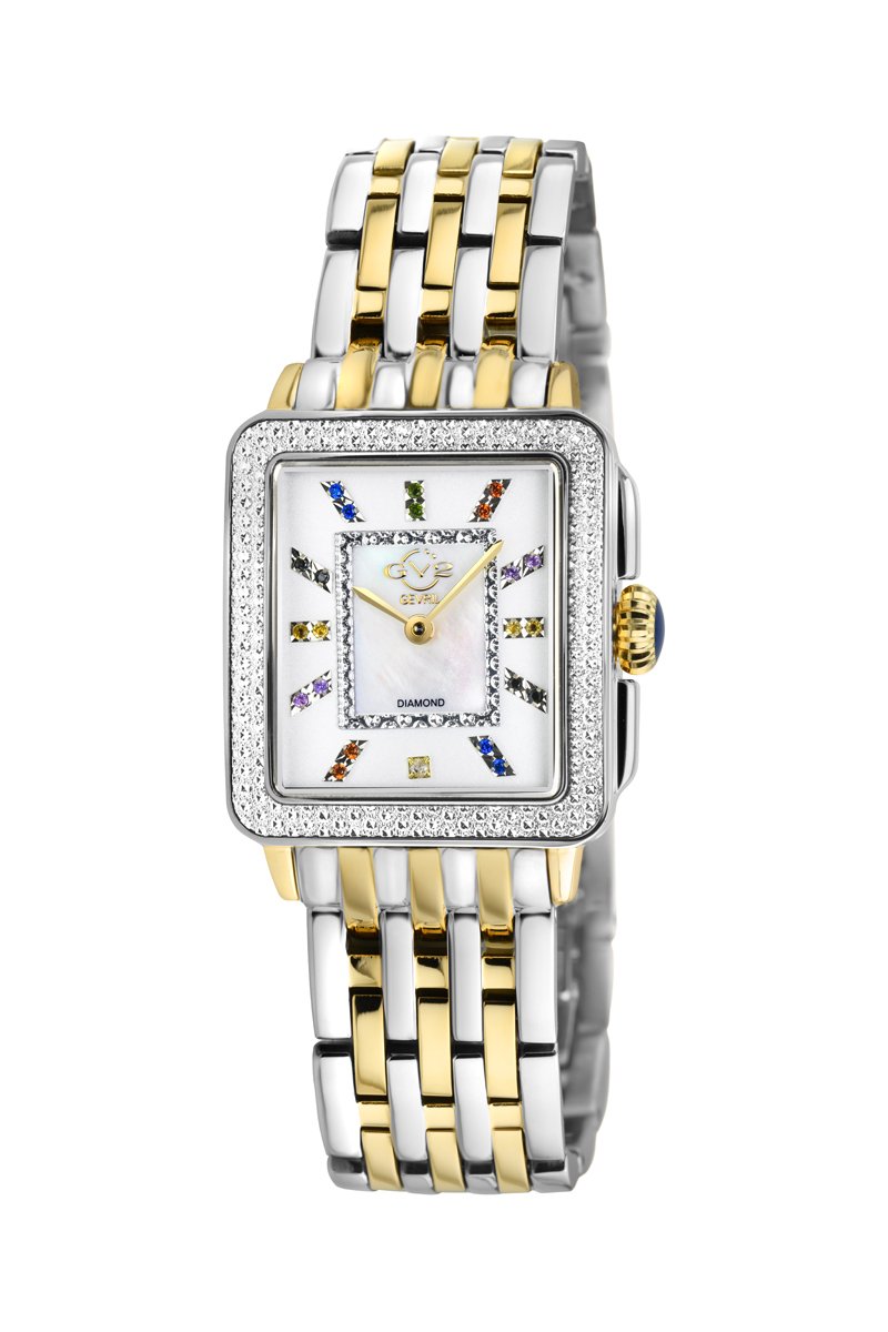 Reloj de cuarzo chapado en ion de oro amarillo, nácar y diamantes