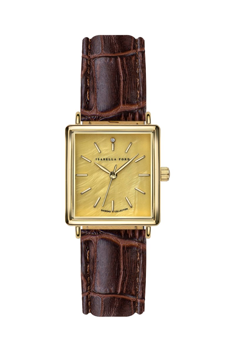 Reloj de cuarzo de piel, nácar y diamante Gisèle