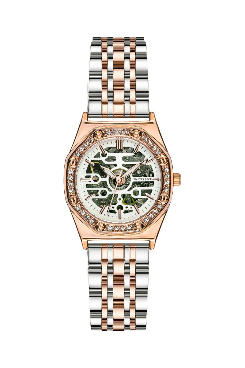 Reloj automático de acero - Plateado y rosa dorado - Walter Bach