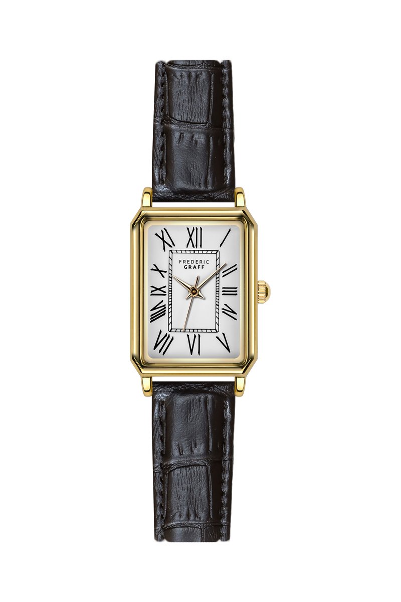Reloj de cuarzo de piel - Negro y dorado - Frederic Graff