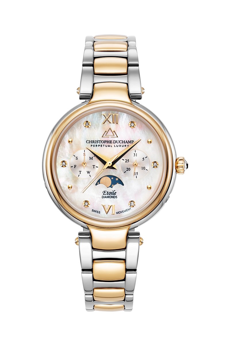 Reloj de cuarzo de acero y diamantes - Indicador de fase lunar