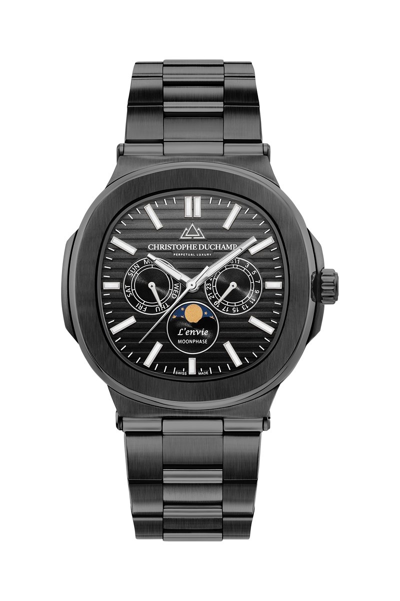 Reloj de cuarzo de acero L’Envie - Contador de fase lunar - Negro