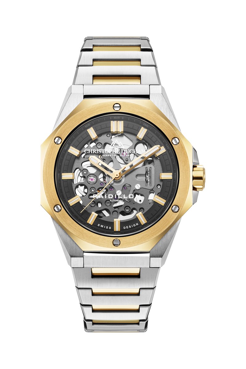 Reloj automático de acero Raidillon Skeleton II - Plateado y dorado