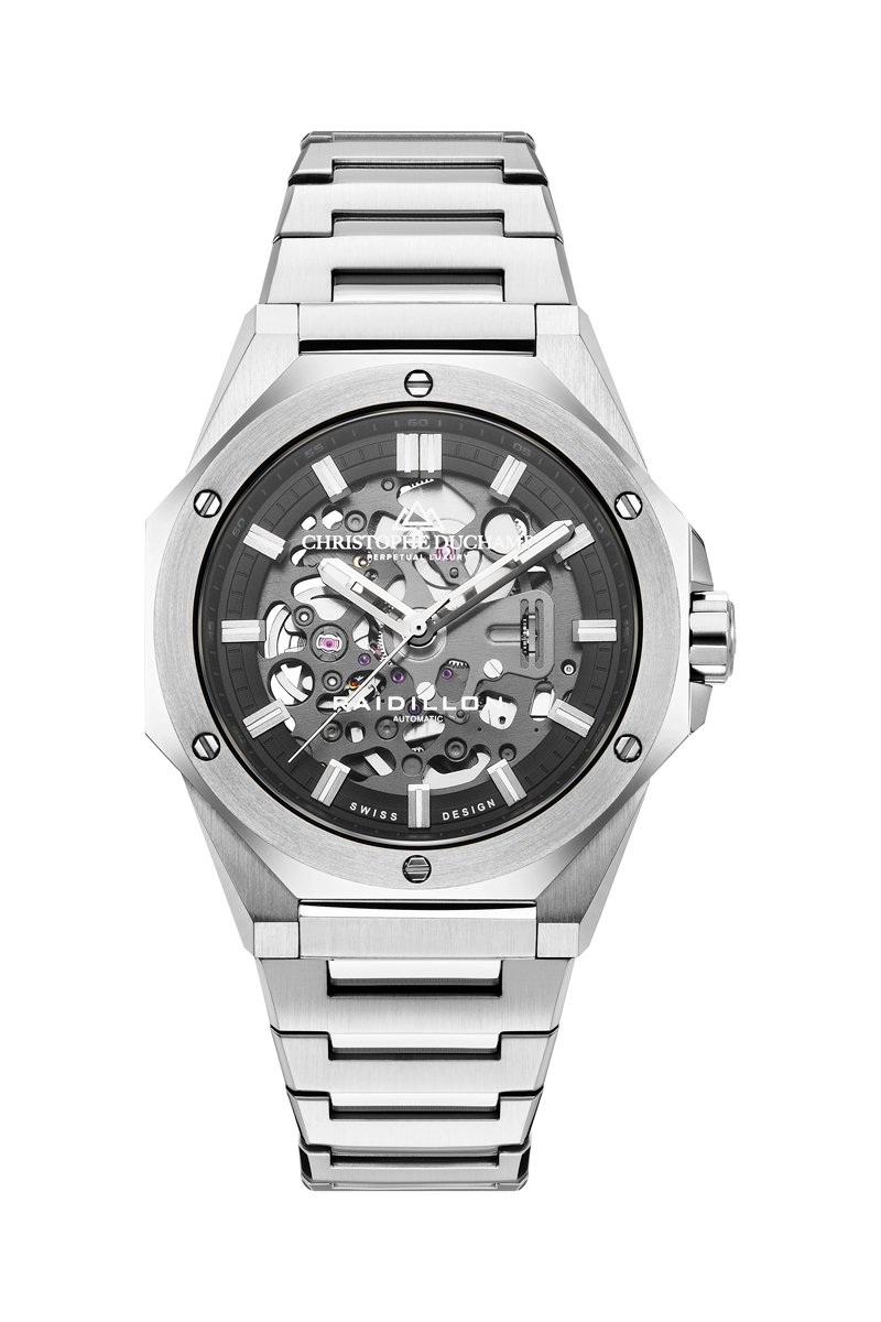 Reloj automático de acero Raidillon Skeleton II - Plateado y gris