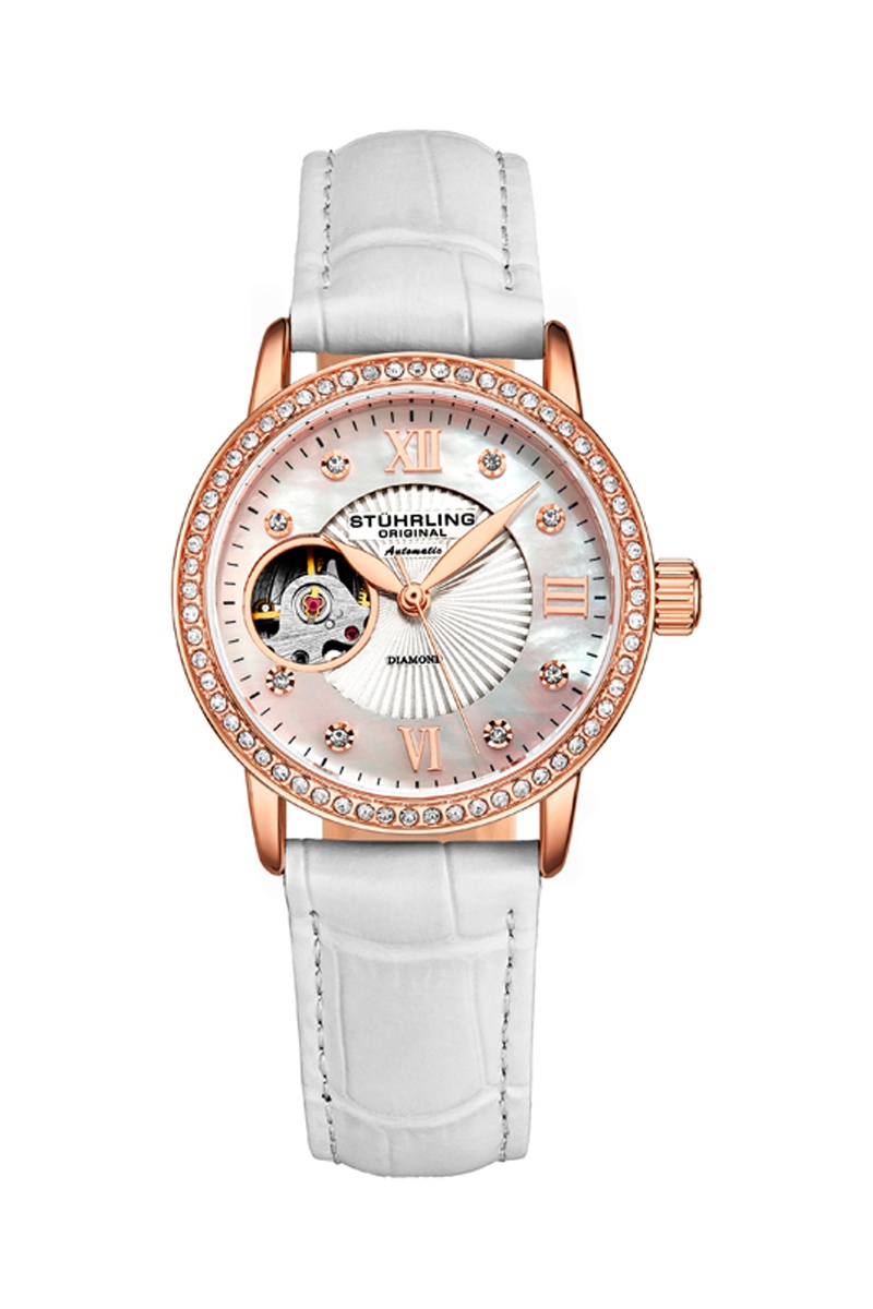 Reloj automático de piel, diamantes y nácar Legacy