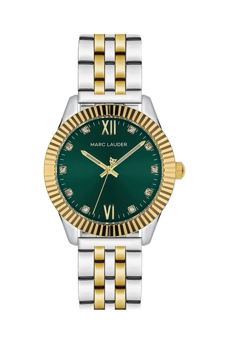 Reloj de cuarzo de acero y circones Buenos Aires - Plateado y verde
