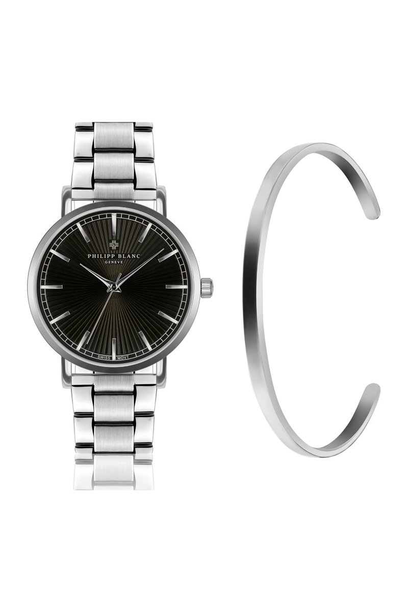 Estuche reloj de cuarzo de acero y pulsera abierta